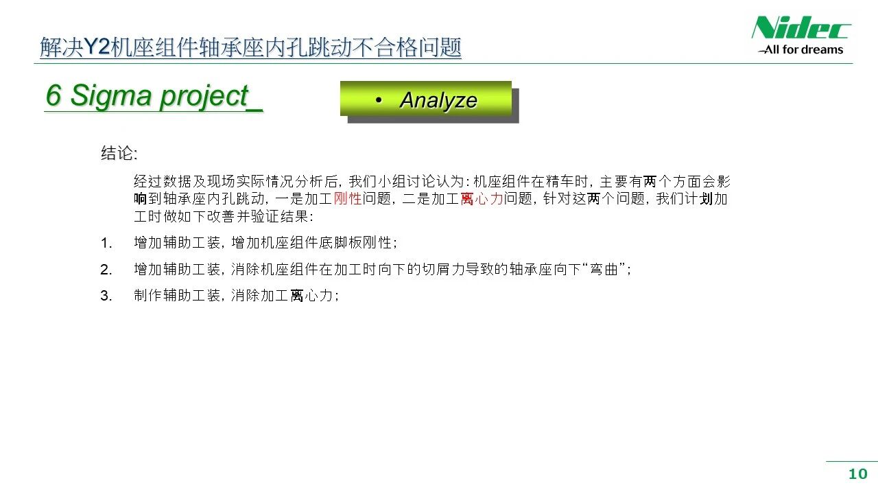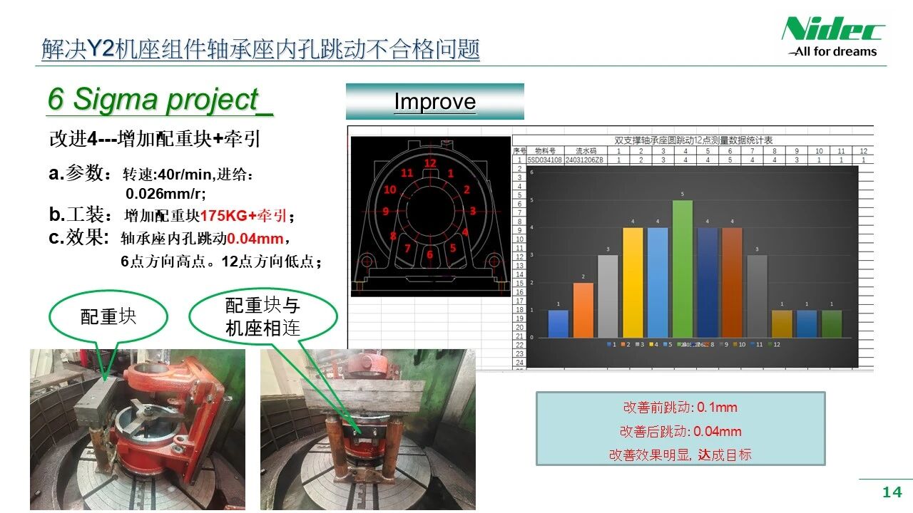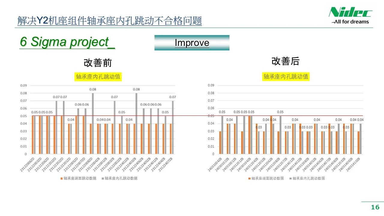 از طریق کاربرد ویژه ابزار بهبود شش سیگما DMAIC در تیمهای بهبود چندگانه کارگاه ماشینکاری، آگاهی و توانایی عملی همه کارکنان برای استفاده مداوم از این ابزار برای بهبود کیفیت فرآیند بهبود یافته است. این امر باعث تحریک نوآوری و نشاط بهبود همه کارکنان در کارگاه شده است، کاربرد گسترده و عمیق روش DMAIC را در پروژههای بهبود آتی ترویج میدهد، توانایی همه کارکنان کارگاه ماشینکاری را برای تجزیه و تحلیل و حل مشکلات غیرعادی کیفیت به میزان زیادی افزایش میدهد، و کارکنان را قادر میسازد تا لذت یادگیری، تمرین و لذت بردن از بهبود فرآیند را پیدا کنند.