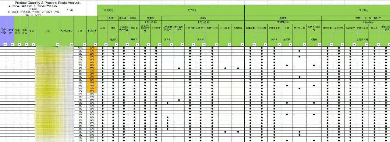 از طریق تجزیه و تحلیل PQPR (Product Quantity Process Routing)، تیم تفاوتهای فرآیندی را بین محصولات مختلف شناسایی کرد، محصولات را طبقهبندی کرد و خطوط تولید را به طور منطقی ترتیب داد تا کارایی تولید را بهبود بخشد.
