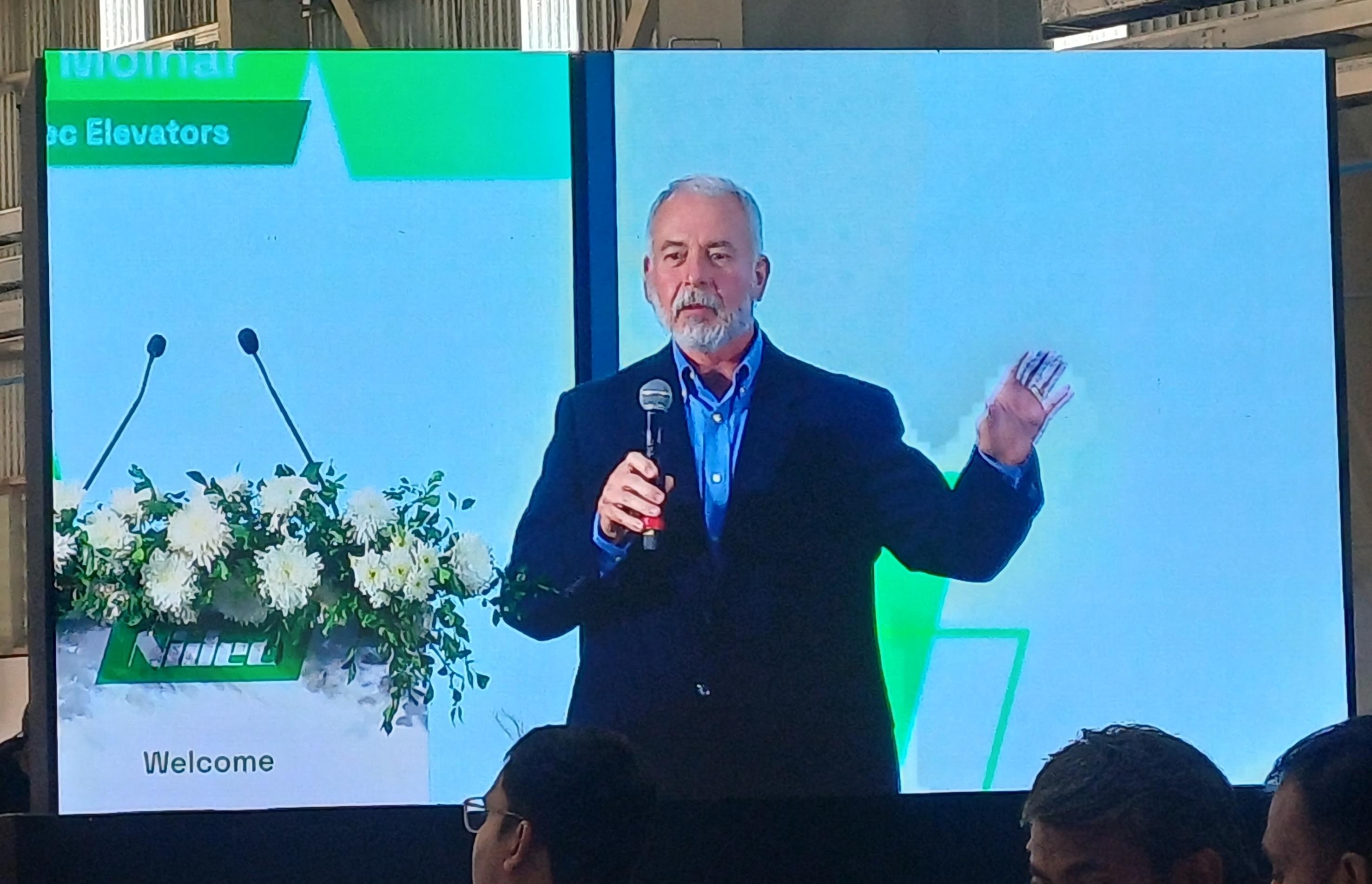 شکل 8 آقای دیوید مولنار، نایب رئیس NIDEC Elevator، در حال سخنرانی در مراسم